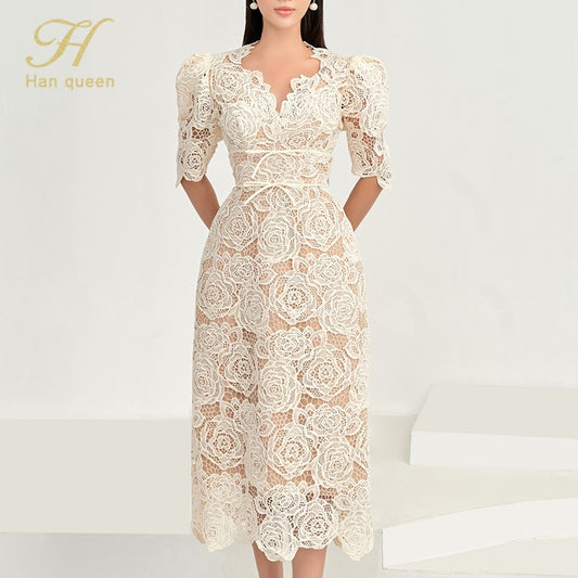 Slim Midi Hollow Out Lace Dress