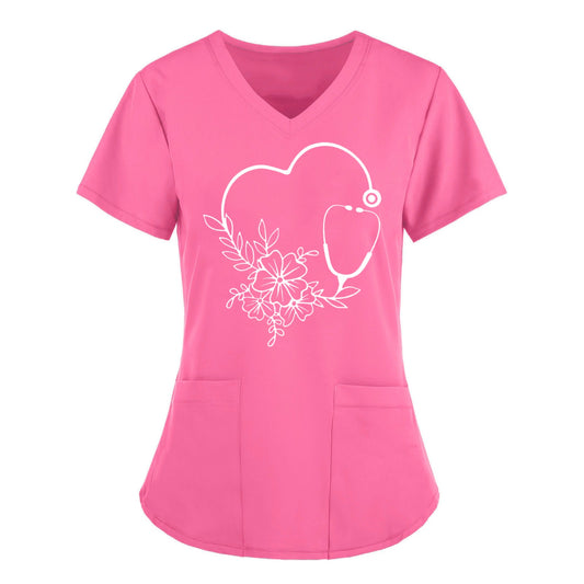 Stethoscope Pattern Scrub Short Sleeve Doctor Nurse Uniform